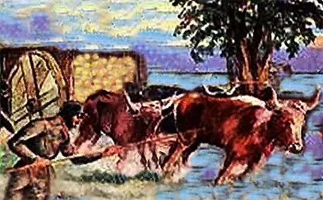 Al ver que los españoles llegaban y temiendo que les robaran sus posesiones, mandaron poner en una carreta todo el oro y enviaron a uno de ellos como conductor.