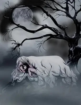 En cualquier caso, se trata de una mujer que estaba celosa de sus dos hijos porque el marido compartía más tiempo con ellos. La mujer resiente esto profundamente, por lo que arroja a sus dos hijos en un río y los ahoga. Cuando el esposo llega a casa y pregunta por los niños, ella le oculta la verdad, pero él se da cuenta de que en el río hay dos niños ahogados. El hombre, presa del dolor, mata a la esposa, cuyo espíritu se queda errante en busca de sus hijos.