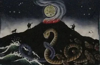 Dios tampoco soportó tanto dolor y decidió perdonar a sus hijos rebeldes. Entonces, les dio vida a los dos cuerpos despedazados y los transformó en una enorme serpiente alada encargada de cuidar los mares y los lagos. La llamó Caicai.