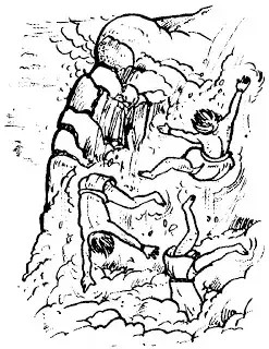 Todos los cañadones y riscos estaban repletos de enemigos, que a pesar de su diminuto tamaño, los fueron empujando hacia la cumbre y allí comenzaron a arrojarlos uno a uno al abismo. El jefe de los enanos obligo a Linco Nahuel a contemplar desde lo alto el terrible espectáculo de ver como sus súbditos eran despeñados.